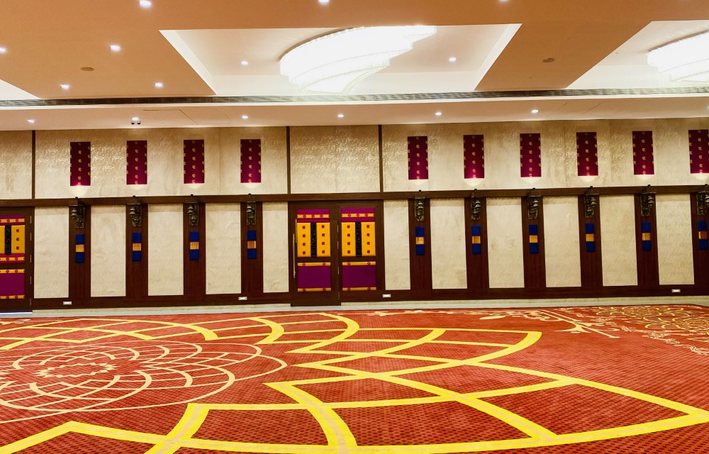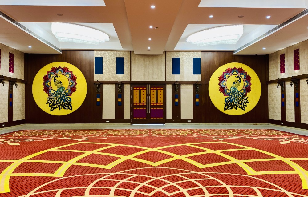 The 6,000-square-foot air-conditioned hall at lobby level is perfect for hosting 450-500 guests in buffet style. Adorned with beautifully laid interiors and stunning glass chandeliers, this elegant space seamlessly integrates style, energy, and sophistication, creating the perfect décor for your wedding.